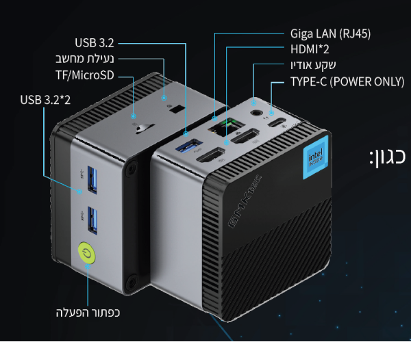 מחשב נייח קטן GMK-G5 Intel N97 12GB 256NVME WIN11 Pro