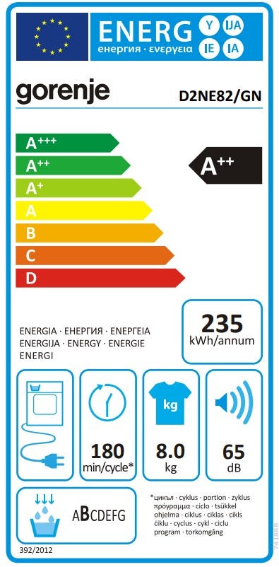 מייבש כביסה gorenje קונדנסור 8 קג דגם D2NE82 GN