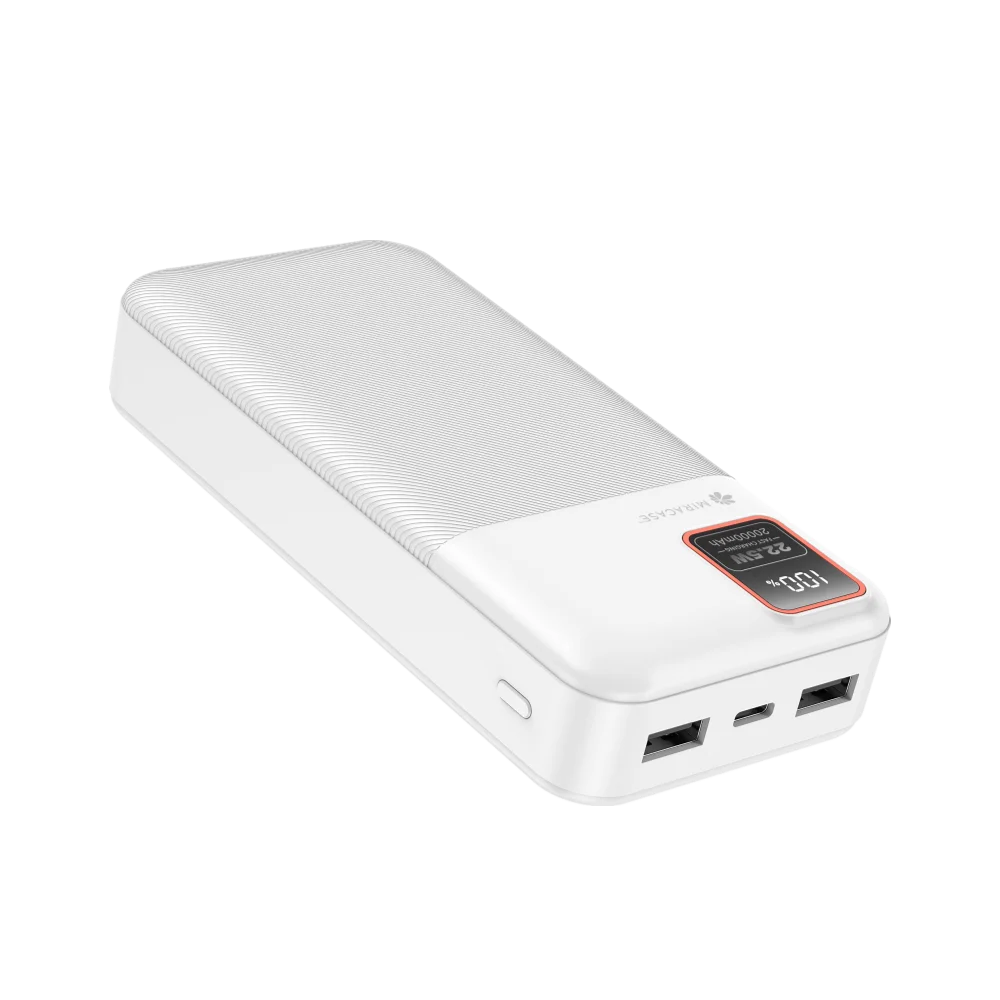 סוללת טעינה דגם MPB20LCD בצבע לבן מבית MIRACASE סוללת טעינה איכותית 20000mAh , מסך לד המציג את אחוז הטעינה , PD 22.5W טעינה מהירה באיכות גבוהה , ניתן לטעון שני מכשירים במקביל.