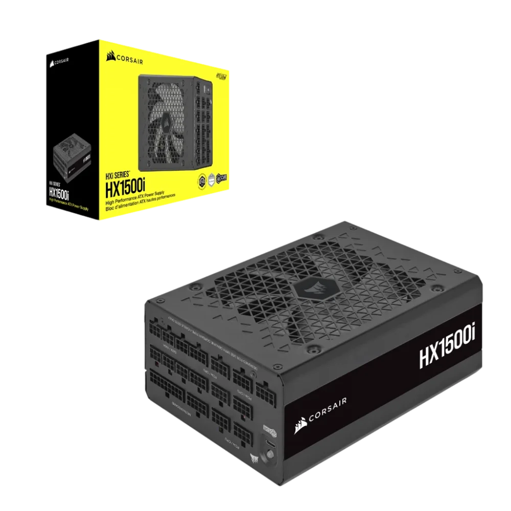 - ספקי כוח פלטיניום מסדרת CORSAIR HXi כוללים קבלים אלקטרוליטיים יפניים 100%, תקן פלטיניום ליעילות הטובה ביותר וכבלים כלוליםPCIe 5.1 לתאימות לדור החדש ביותר של סדרת NVIDIA 4000 AMD® Ryzen 7000 /