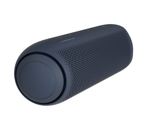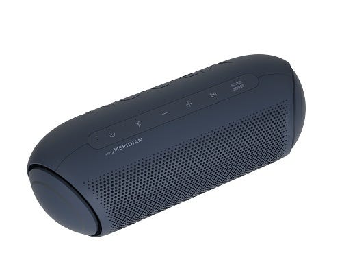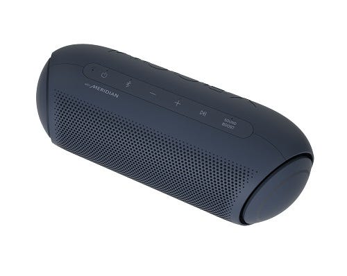 רמקול Bluetooth נייד XBOOM Go PL7 מבית LG כולל טכנולוגיית פרימיום של Meridian לסאונד נקי ועוצמתי במבנה נייד נוח וקל לנשיאה.