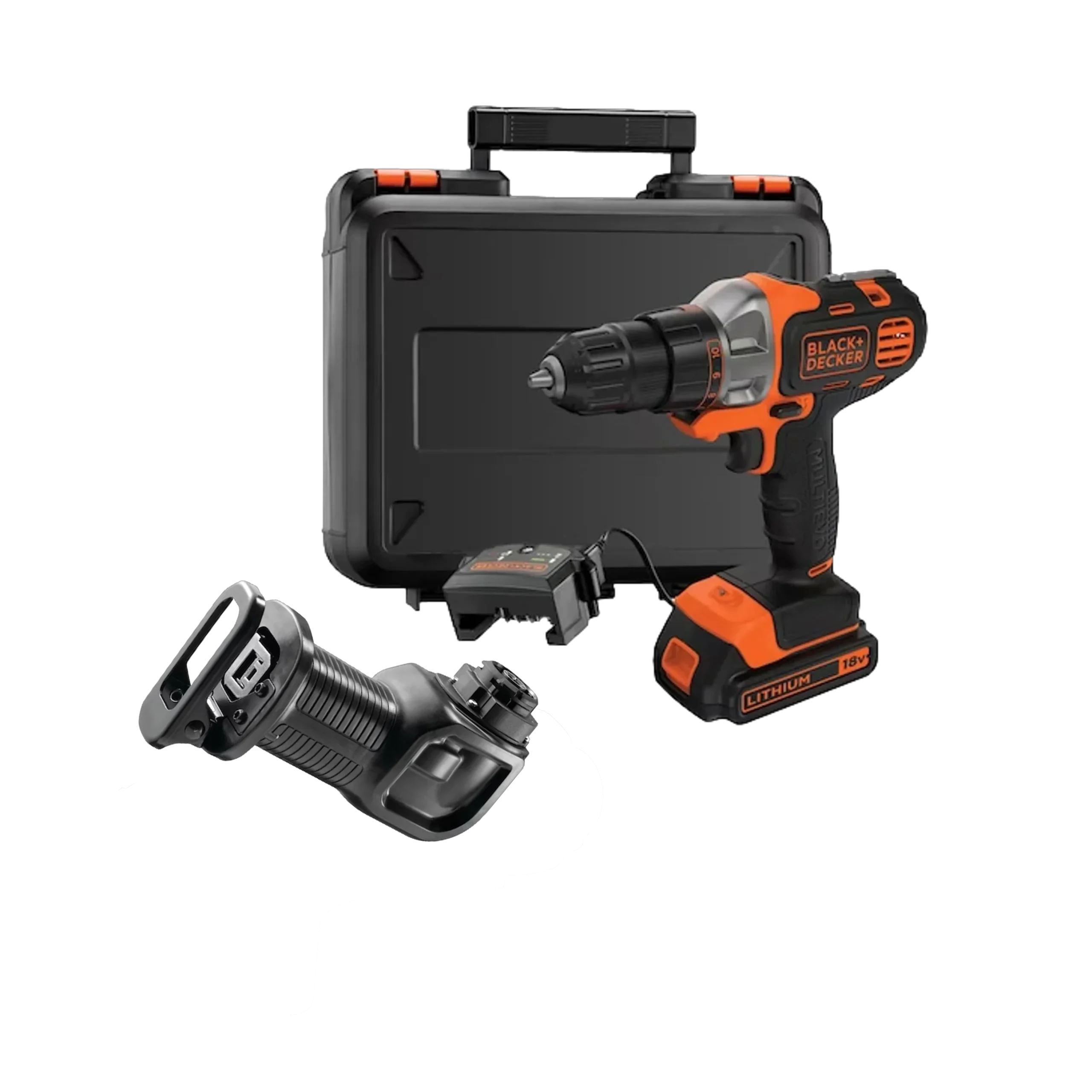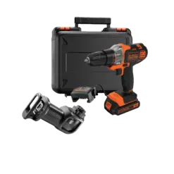 באנדל ייחודי מבית Black+Decker הכולל את גוף הכלי MULTIEVO 18V ואת ראש המסור האנכי (Sawing Head) – שילוב שמעניק לכם כלי עבודה מודולרי אחד שמסוגל גם לקדוח ולהבריג וגם לבצע חיתוכים ישרים ומדויקים.