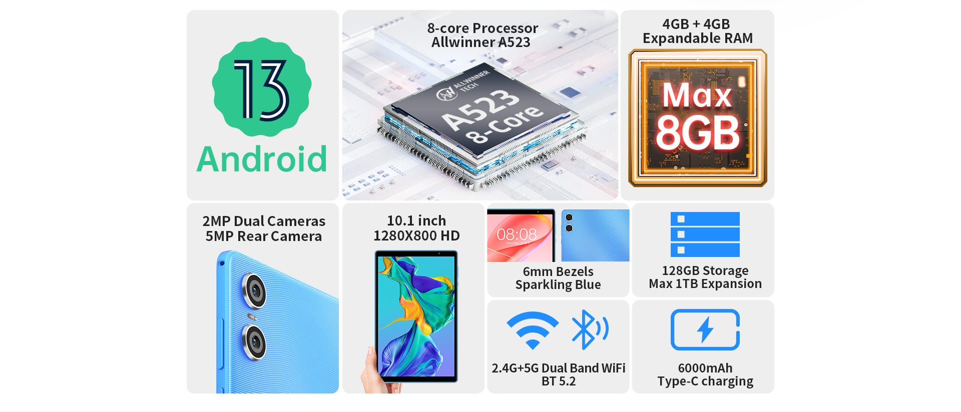 מעבד – עוצמתי 8 ליבות, Allwinner A523מעבד גראפי- Arm Mali-G57