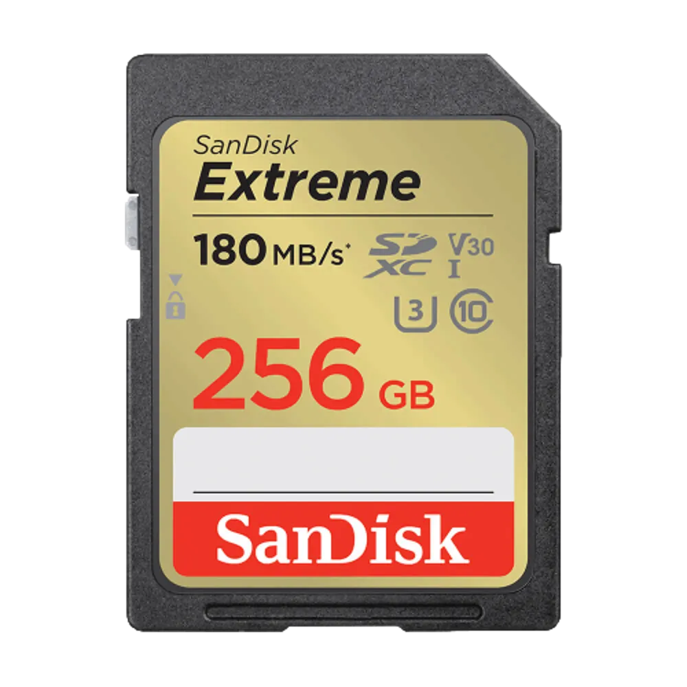 כרטיס זיכרון בנפח 256GB S.D EX 4K 180S V30 מבית SANDISK