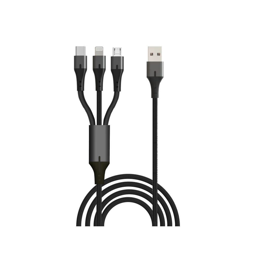 כבל סנכרון וטעינה 3 ב-1-USB to lightning, micro usb and type-c