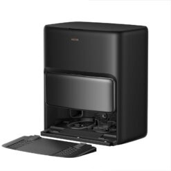 תחנת עגינה חכמה לניקוי עצמי – תחנת העגינה מבצעת ניקוי עצמי במים חמים (75°), ריקון אוטומטי של האבק עד 75 ימים, מילוי מים נקיים, חיטוי רפידות המגב וייבושם באוויר חם (45°).