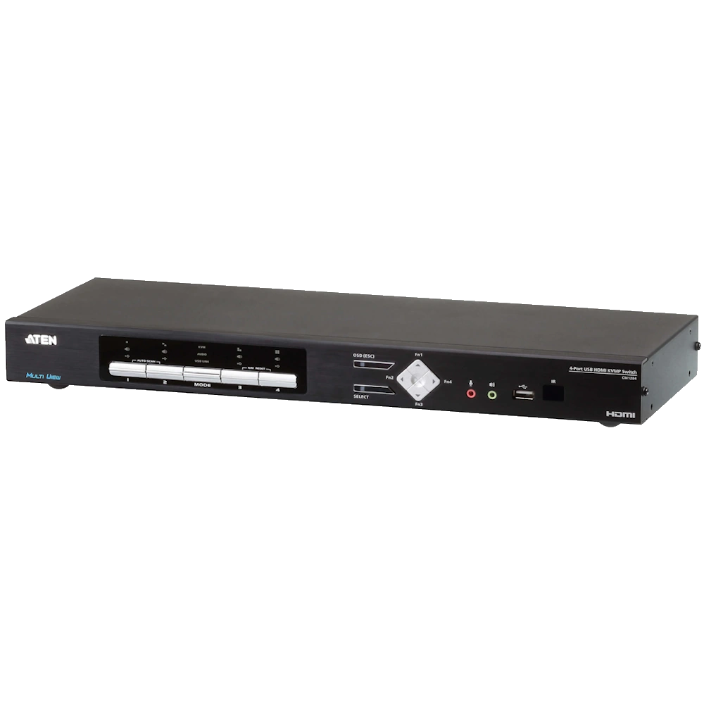 ה-CM1284 מבית ATEN נועד במיוחד לשליטה וניטור בזמן אמת של מספר מחשבים – עם תמיכה בתצוגת Multi-View (עד 4 מסכים בו זמנית), מיתוג עכבר חופשי בין חלונות (Boundless Switching), רזולוציית HDMI עד 4K, וממשק שליטה מתקדם כולל OSD, שלט IR ופקודות RS-232. אידיאלי לעמדות בקרה, מסחר, רפואה ותעשיות אוויריות.